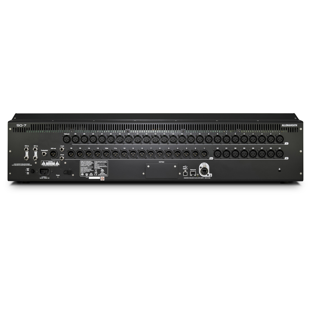 SQ-7 is the 33-fader flagship console in the SQ series, powered by Allen & Heath’s revolutionary 96kHz XCVI FPGA engine. Created to excel in demanding scenarios such as AV, corporate events, live productions and houses of worship, SQ-7 offers pristine high-resolution audio quality and an ultra-low latency of <0.7ms. The console features 32 exceptional onboard mic preamps, plus 8 stereo FX engines with dedicated stereo return channels and access to the renowned RackExtra FX library. SQ is a natural choice for in-ear monitor setups, providing 12 stereo mixes (configurable as groups or auxes), whilst Automatic Mic Mixing makes it an excellent choice for conferences, panel talks and more.