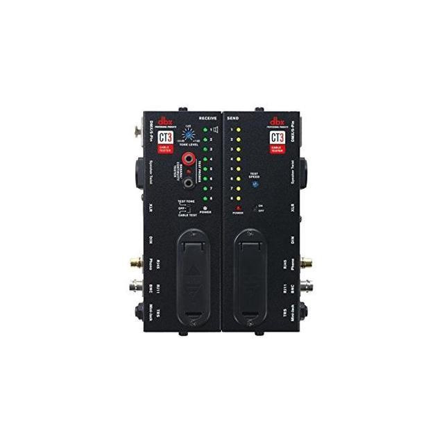 The dbx CT3 is an advanced cable testing unit allowing you to evaluate a large variety of cables with ease. The CT3 offers many common connectors such as RJ45, RJ11, MIDI, Speaker Twist, XLR, RCA Phono, BNC, DIN, TRS, TS, DMX, & Banana. It can be split into 2 parts, a SENDER and RECEIVER so preinstalled and long cables can be tested.