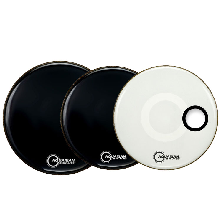 These single ply, resonant bass drumheads feature Aquarian’s patented “Floating Muffling System.” They are perfect companions for the Super-Kick® and Impact® series batter heads and eliminate the need for external muffling of the resonant head. The result is a bass drum that will tune up and mic up in seconds. The Regulator® heads are available in Video Gloss Black or White.with choice of a large 7″ ported hole in the center, a 4 ¾” offset port or a full head with no porthole.