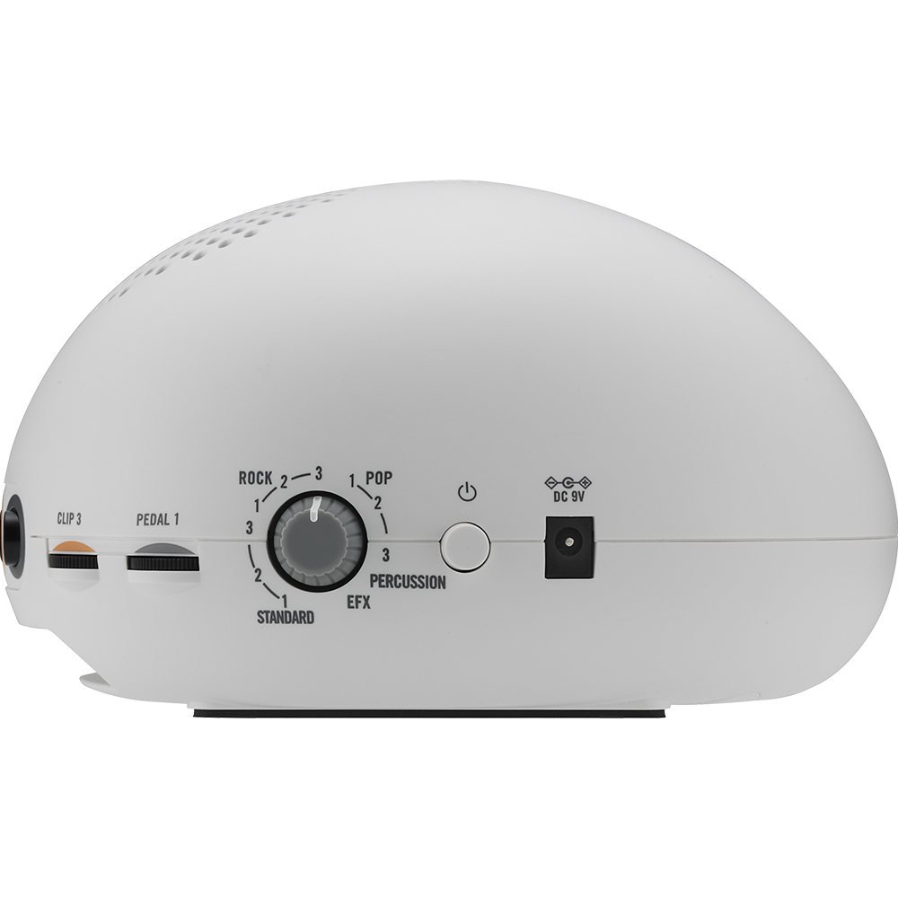 The CLIPHIT is a new electric drum kit that’s ideal for drum practice at home or for casual playing. Attach the clips with their internal sensor to a magazine, desk, or almost any surface, transforming it into a snare, hi-hat, or cymbal. You can also attach these clips to practice pads, using them to play drums or any of the programmed EFX sounds that include dog sounds, cat sounds, hand clapping. CLIPHIT will breathe new life into your drum practice, and is a great way to enhance your experience and creativity. CLIPHIT is an electronic drum kit composed of three clips with internal sensors, as well as a foot switch. You can attach the clips to almost any surface such as a practice pad, magazine, or desk, and play drums in real time. The volume changes as you vary the force of your strike, and can also be adjusted independently for each clip and pedal. There’s a 3-inch speaker with 2W output and a bass-reflex design, delivering great-sounding tone for your drum performance, or connect headphones or an external speaker system for an even bigger sound. Eleven different combinations are provided, including snare, hi-hat, toms, cymbals, bass drums. If you add an optional pedal switch, you’ll be able to simultaneously play a total of five different sounds, three with the clips and two with the pedal, expanding your drum performance to hi-hat open/close or double bass. EFX programmed sounds such as conga, tambourine, hand-claps, and even dog barks are just some of the wide variety of sounds included in the CLIPHIT.