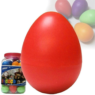 Plastic created with weight variations available for different sounds. Egg shakers of varying weights and sizes made with plastic to give a range of soft percussive sounds to include in your music.