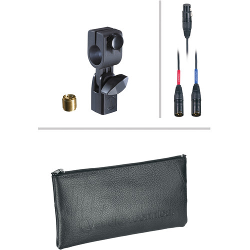 The AE-2500 also provides a low-frequency roll-off switch. Frequencies below 80Hz can be eliminated to reduce noise and improve intelligibility. The cardioid polar pattern is effective in minimizing noise and ambiance at the off-axis sections of the microphone. A 10dB Pad switch increases head room allowing louder, transient rich signals to be reproduced without distortion. The output connection is a 5-pin XLR male and a 16.5-foot (5m), 5-pin XLR female to dual XLR 3-pin male cable is provided. The dual cable design allows users to obtain individual control over each element using two channels on a separate audio mixer or dual preamplifiers.