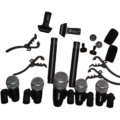 7pc (5 Dynamic, 2 Condenser) with Mic clips and Carry case