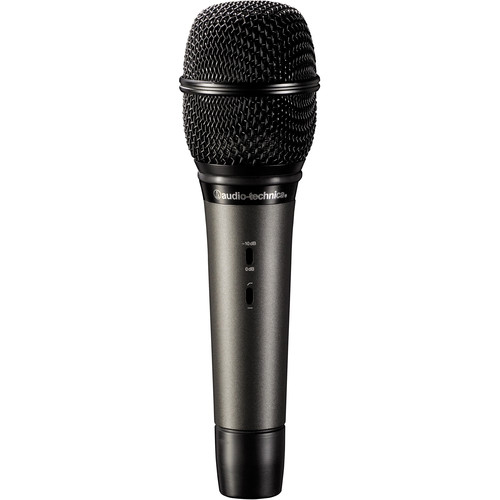 The Audio-Technica ATM710 is a professional cardioid condenser microphone designed to capture vocals in performance and recording applications. The highly sensitive condenser element provides enhanced detail and character over dynamic elements. The cardioid polar pattern is effective in rejecting off-axis noise and audio signal. The ATM710 features an 80Hz low cut filter switch for eliminating low frequency noise. A -10 dB Pad provides added headroom when capturing peaking audio signal.