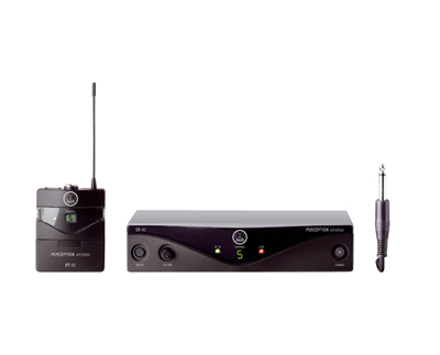The Perception Wireless high performance Instrumental Set delivers brilliant sound for an exceptionally wide range of applications. The included PT45 body-pack transmitter is the smallest and lightest transmitter in its class. It provides a professional three-pin mini XLR connector and can be used with the included guitar cable or one of the optionally available AKG miniature microphones.