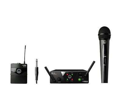 The WMS40 Mini Dual Vocal/Instrumental Set is a true plug’n’play wireless solution. The included PT40 Mini body-pack transmitter provides a professional 3pin mini XLR connector, compatible with guitar and bass levels, headsets and instrumental mics. The included HT40 Mini handheld transmitter features a dynamic cardioid capsule for maximum gain before feedback. Their extremely long battery life of 30 hours off a single AA battery saves money in day-to-day use. The receiver offers two balanced outputs via 1/4″ jack connectors.