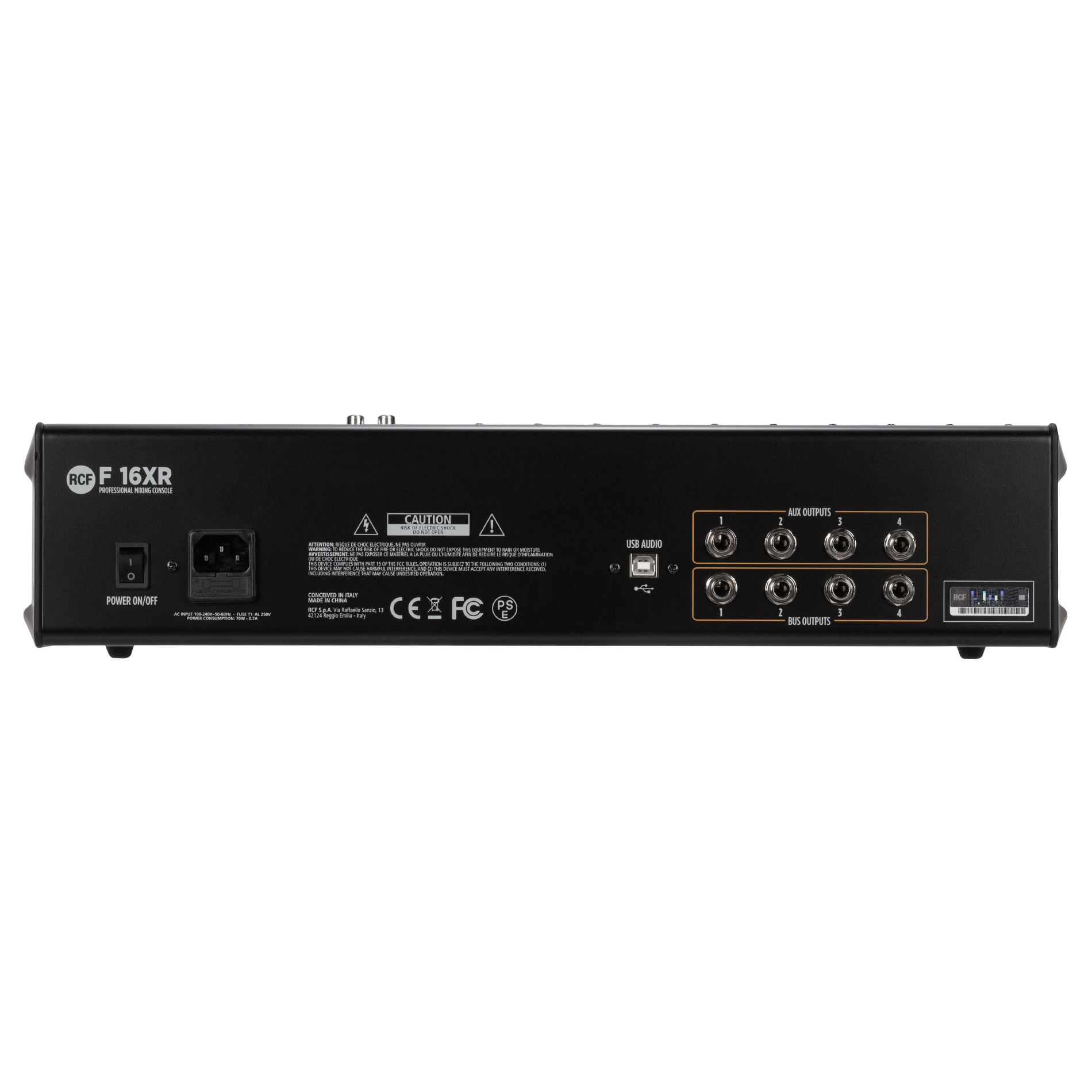 The RCF F 16XR Mixer picks up where the RCF’s iconic E Series left off. Based on the legacy of well-established analogue mixing, the F Series 16XR delivers high quality audio in the form of a robust, powerful, and easy-to-use mixer. A full balanced audio path from input to output, a formidable DSP FX unit, and USB connectivity ensure you’ve got everything you need for great sound right in front of you. A 3-band EQ for mono channels (and 2-band for stereo channels) allows for precision frequency shaping possibilities. While single control compressors are both powerful and easy-to-use.