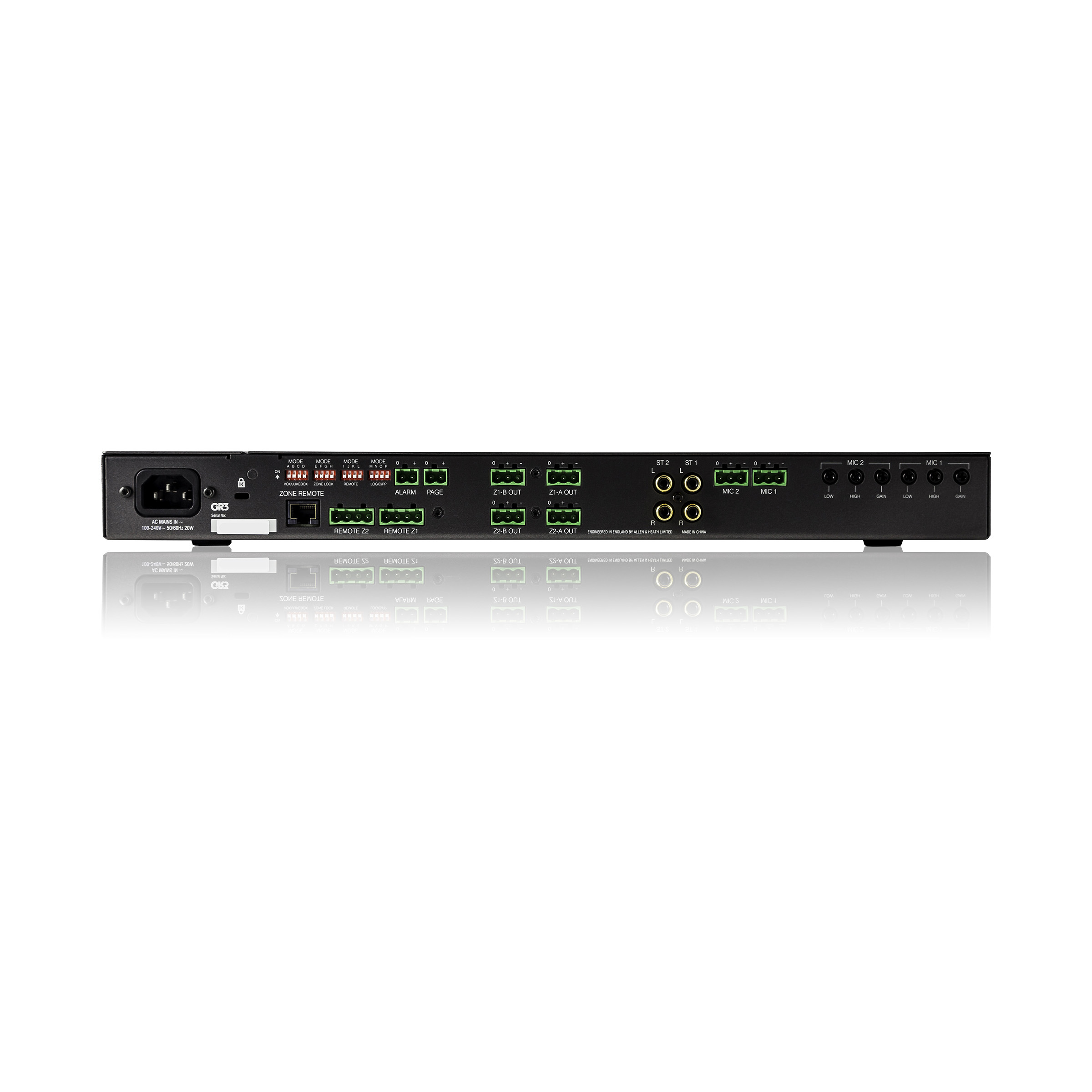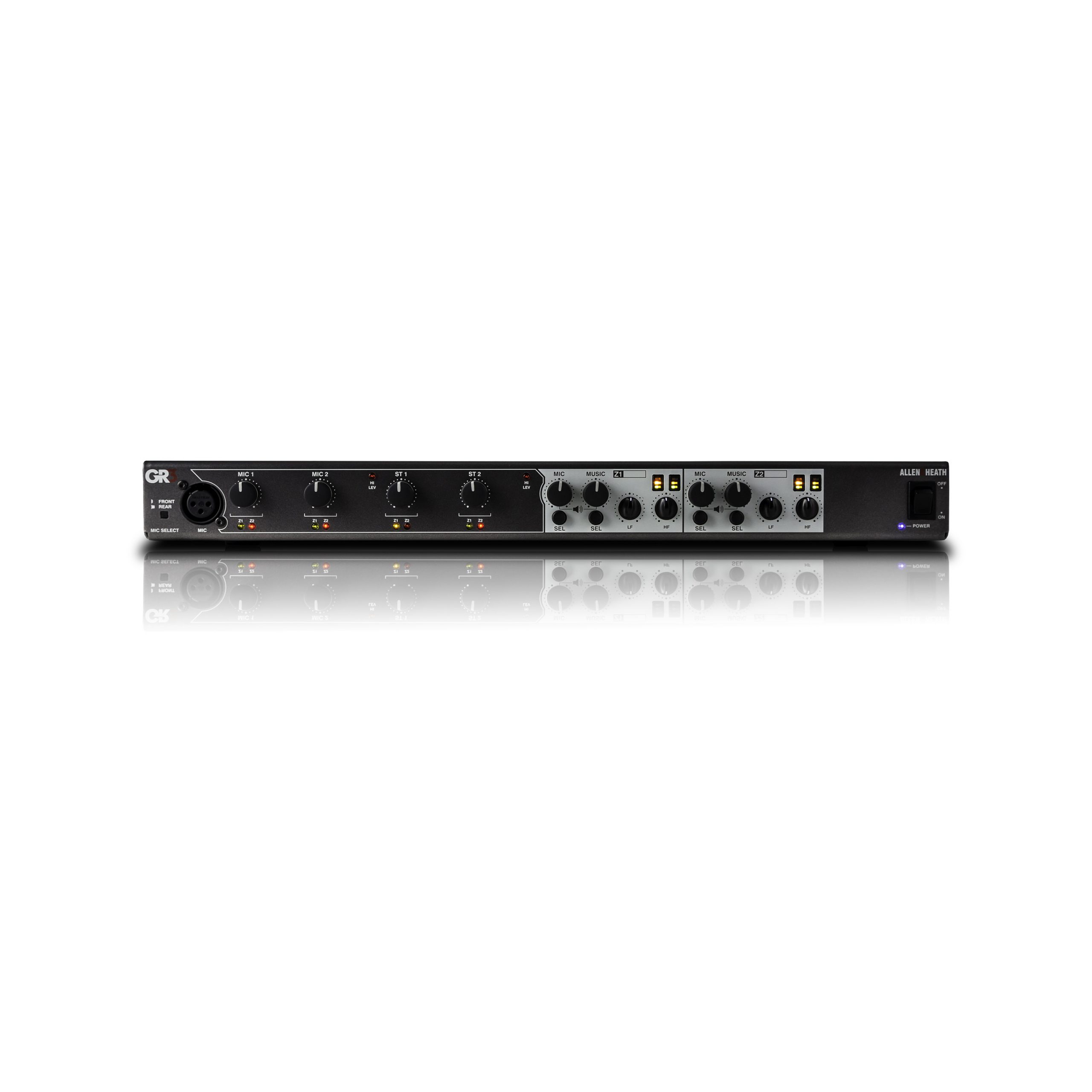 Gain and 2 band EQ available on all mic inputs with an additional 2 band EQ available on Z1 & Z2 outputs.